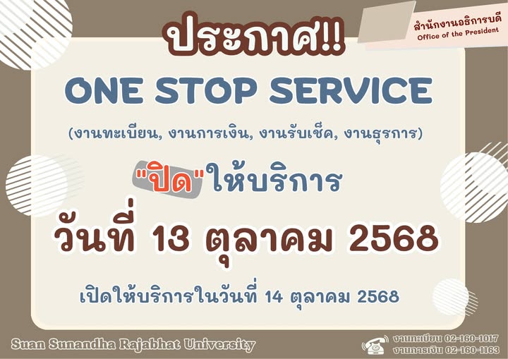 One Stop Service ชั้น 1 ตึกสำนักงานอธิการบดี