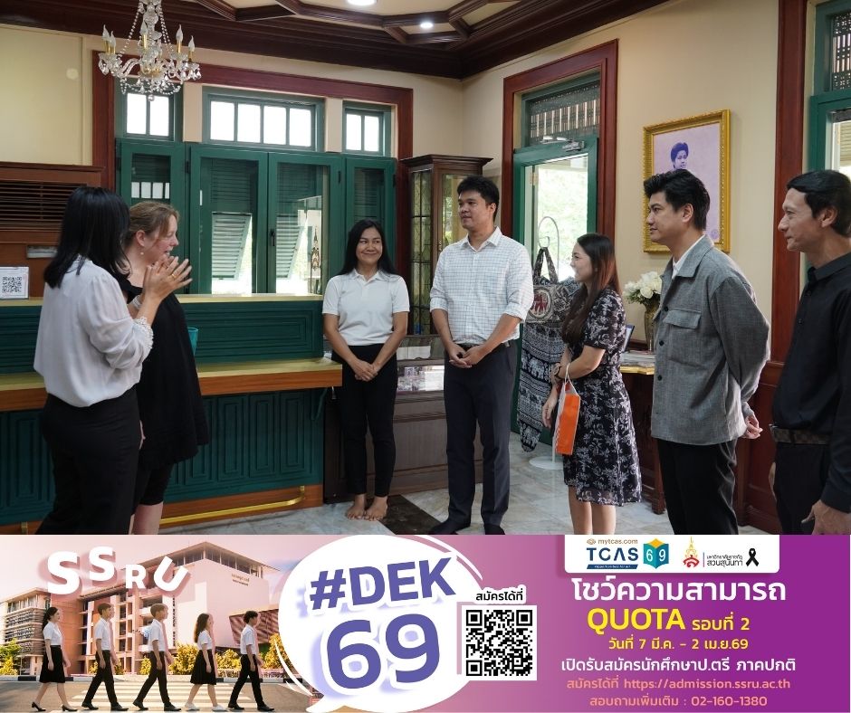 บรรยากาศการต้อนรับเต็มไปด้วยความอบอุ่น เราได้เริ่มต้นด้วยการนำชม พิพิธภัณฑ์อาคารสายสุทธานภดล เพื่อถ่ายทอดเรื่องราวอันทรงคุณค่าของ "ชาววัง" สวนสุนันทา และพระประวัติของสมเด็จพระนางเจ้าสุนันทากุมารีรัตน์ พระบรมราชเทวี ซึ่งคุณ Amy ได้ให้ความสนใจและชื่นชมในอัตลักษณ์ทางประวัติศาสตร์ไทยที่หาดูได้ยาก ซึ่งเป็นรากฐานสำคัญของสถาบันเรา