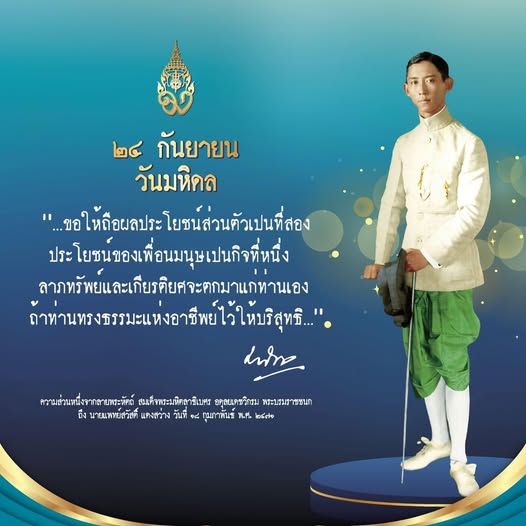24 กันยายน “วันมหิดล” น้อมรำลึกในพระมหากรุณาธิคุณ สมเด็จพระมหิตลาธิเบศร อดุลยเดชวิกรม พระบรมราชชนก พระบิดาแห่งการแพทย์แผนปัจจุบันของไทย